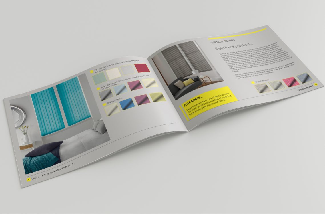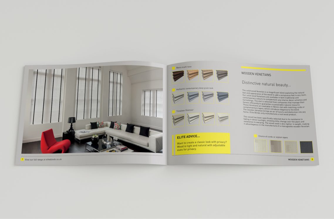 Brochure design for a window blinds company.